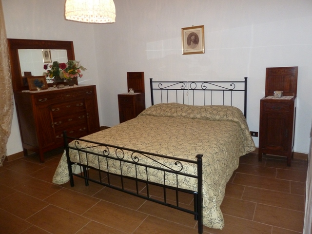 La camera matrimoniale con arredi tipici dell'epoca