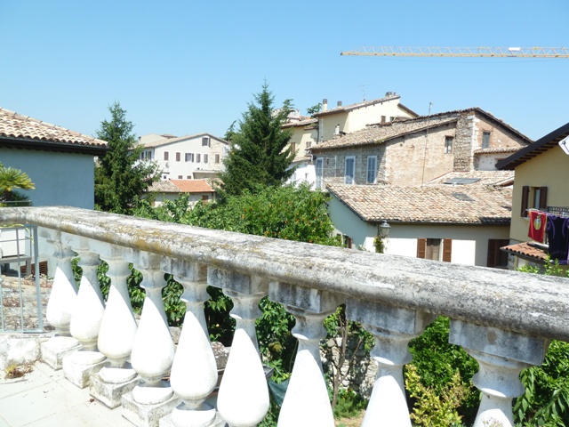 Vista dal balcone superiore da dove si possono ammirare i tipici tetti di Ascoli Piceno affacciandosi all'interno di un giardino privato